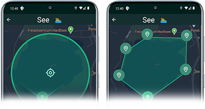 Verbringen Sie gerne Zeit mit Freunden in Parks, Bars, Fitness- und Einkaufszentren oder haben Sie andere Lieblingsorte? Erstellen Sie Zonen für jeden Ort und teilen Sie sie mit Freunden, die jeweils die gleichen Interessen und Aktivitäten haben.