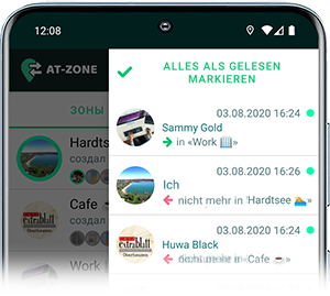Darüber hinaus können Sie mit AT-ZONE die Bewegung von Mitarbeitern auf verschiedenen Arbeitsorten verfolgen. Dies kann zum Beispiel für Logistikkoordinatoren oder Kurierunternehmen interessant sein.